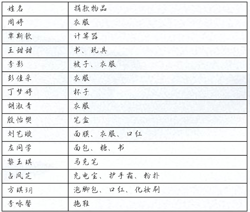 爱是无私的,无论飘到哪里,都会融化。爱是石头,擦燃生命之火;爱是火,点亮生命之灯;爱是灯,带领我们走向光明。同在一片蓝天下,却有着截然不同的境遇。他们每一个充满期待的眼光无不触动这我们每个人的心弦,使我们仿佛也有一种使命感,也驱使着每一颗善良的心想着能为需要的人去做些什么。为此,我们特别发起了此次爱心募捐活动动。活动结束,我们收获了满满的爱心以及所捐赠的物品。