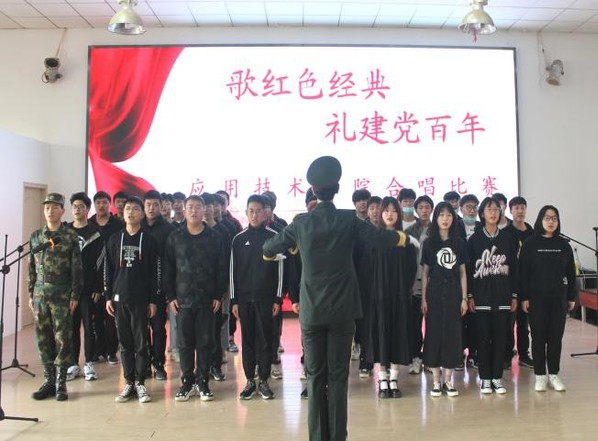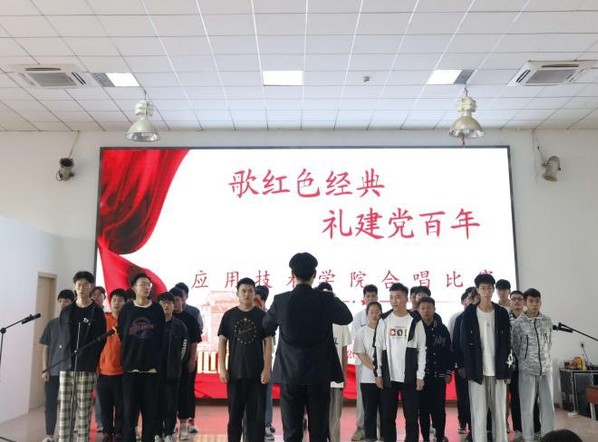 今年是中国共产党成立100周年,为传承红色文化,学习红色精神,激发广大学生的爱党爱国热情、凝聚人心、鼓舞斗志。应用技术学院分团委于2021年4月19日12时30分在体育馆403室举行了“歌红色经典,礼建党百年”合唱比赛。应用技术学院辅导员田真老师、柳娜老师,陆薇薇老师、田艳老师、周璇老师、陈艺丹老师,以及分团委书记梁爽老师出席了本次活动并担任评委。