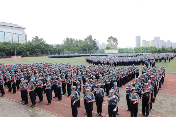 在为庆祝中国共产党成立百年之际,她们齐声唱响《没有共产党就没有新中国》,用着不同阵型,依次摆出“神舟十二号”、“党徽”、“建党100”、“中国地图”、“中国”、“工商”、“2002”、“2021”等图案。波浪滔滔,合着手语,展现了出色的汇报表演,表达了对祖国的热爱和庆祝,也彰显了武工商学院的精神风貌。她们是绿色军营里的红花,是一朵朵坚毅秀美的铿锵玫瑰!在未来的日子里,青春绽放,任阳光与她们赛跑,风雨同她们狂飙,她们将坚定信念,迎接新的挑战,愿她们在青春绽放出最美丽的花朵,谱写新时代的担当。