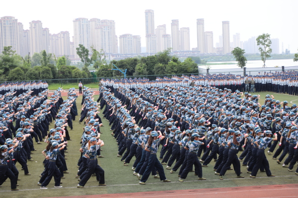 谁说“女子不如男”?穆桂英、花木兰、张伟丽、张桂梅、陈薇等等,都是巾帼英雄。过去的十四天里,在广阔的大操场上与铮铮铁骨的男子汉不同,她们是钢铁营盘里的朵朵姐妹花,她们一身戎装,豪情万丈。她们就是由1300多名同学组成的“女子花样队”。