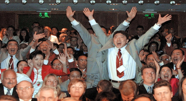 (1991年12月4日 申奥成功现场欢呼)