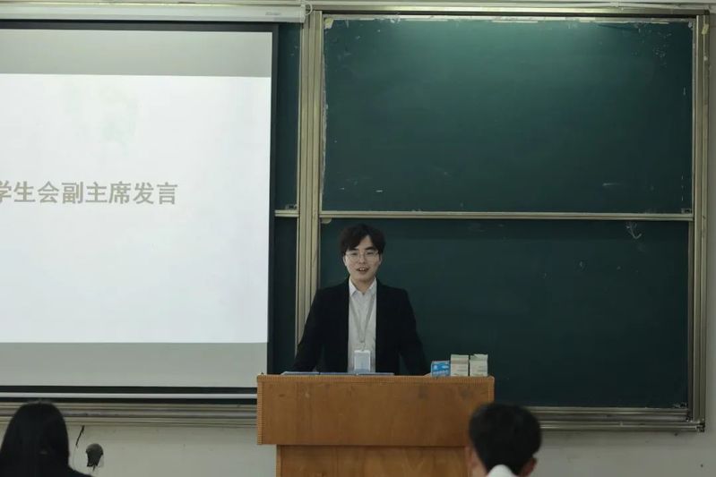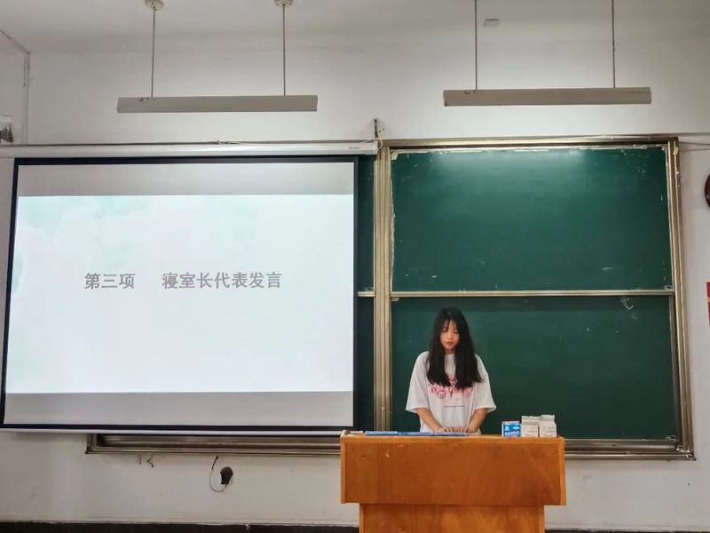 活动第四项由学生会副主席梅延鹏发言。他首先对院学生干部,20级,21级各班团支书及各班同学对“文明寝室月”活动的支持表示感谢,其次强调了“文明寝室月”是我们学院的特色活动,希望大家积极参与,配合学院工作,加强寝室建设,营造一个良好的学习氛围。