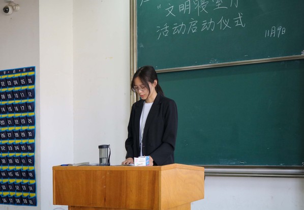21级团支书代表陈楠同学以强化内务管理为主题,表达了此活动对大学生的益处、必要性,强调寝室卫生人人有责,呼吁寝室内每个人都有责任和义务积极参与文明寝室建设。