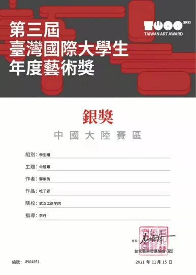 (通讯员:徐亚玲)2021年12月18日,beat365中文官方网站应用技术学院创新实验班的学生喜获佳绩。在第三届台湾国际大学生年度艺术大赛中获得2枚银奖和7枚铜奖。第三届台湾国际大学生年度艺术大奖赛主要面对中国台湾、中国大陆、香港澳门及新加坡地区的国际性大学生设计大赛,旨在推动中华传统文化的创新发展。