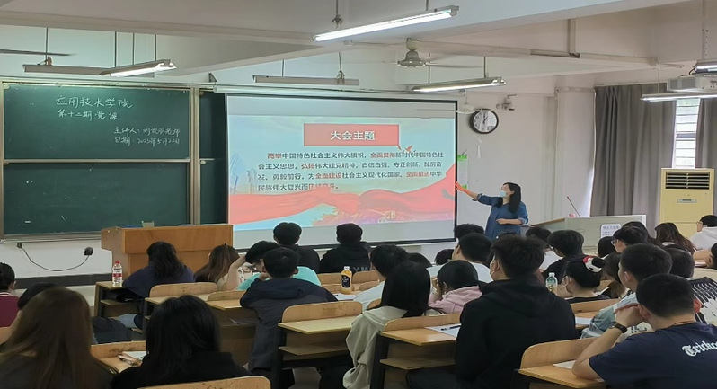 第四次党课由应用技术学院刘俊丽老师进行讲授,主题为“党的二十大主题研讨”,刘俊丽老师从党的二十大的会议议程,主题出发,与同学们共同讨论了党的二十大的历史意义以及同学们作为当代大学生应当从党的二十大的学习中收获什么。刘俊丽老师从信仰和责任等多个维度,阐释了新时代大学生“高举社会主义伟大旗帜,为全面建设社会主义现代化国家而团结奋斗”的重要性,课堂讨论氛围热烈而积极,同学们踊跃发言,取得了良好的效果。