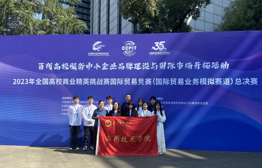 甬江奔涌映百年良港交融互通,我院学子团结奋进再奏胜利凯歌。2023年10月19日至23日,全国高校商业精英挑战赛国际贸易竞赛全国总决赛在浙江宁波国际会展中心7号馆举行,该竞赛由中国国际贸易促进委员会等多家单位联合举行,全国各层级院校共计370余所派出代表队参赛。我院派出了由国际经济与贸易、财富管理两个专业构成,共计9人的两支队伍参赛,最终在熊晓亮院长及刘俊丽老师的带领以及队员们的不懈努力下,两只队伍均取得了国赛二等奖的好成绩,同时该项目教师赛道跨境电商国际营销教师组获得二等奖,beat365中文官方网站也收获了该项比赛“最佳院校组织奖”。