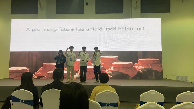 该项比赛由产品策划书编写、全英文模拟商务谈判、全英文产品发布会以及展位设计布置等多个项目构成,队员们结合自身选定产品特点,大胆创新,用精心布置的展台来欢迎来自世界各地的“顾客”前来商务谈判,其中,两只队伍的设计的展台均被大赛组委会收入其官方公众号进行展示宣传。模拟商务谈判环节中,由国际经济与贸易专业同学组成的队伍充分运用所学知识,将所选产品介绍给“顾客”,令评委留下深刻映像;由财富管理专业的同学面对专业不对口,队伍人数较其他参赛队较少等不利条件,尽全力回答“顾客”回答的问题,努力将最好的状态展示出来,最终收获评委的广泛好评和鼓励。产品发布会环节,国际经济与贸易专业的同学充分运用多种媒体资源,用英文描绘了一段人与自然和谐共生发展的生态画卷,并将该产品的特点、意义等与绿水青山融合,向世界介绍了中国可持续发展战略下中小企业的做为与责任;财富管理专业的同学则深挖所选产品内在传统文化内涵,将企业发展战略上升到高质量转型发展内在要求,在介绍产品特点与品质的同时,将产品所在地的红色文化结合,展现了共产党人不忘初心,带领人民过上好日子的历史责任。两组同学的演讲均收获评委及观众的广泛好评。