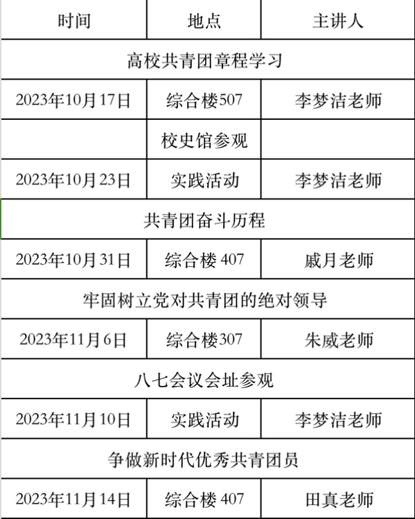 本次团课通过教育培训和实践锻炼等行之有效的方式,不断提高大学生骨干、团干部、青年知识分子等青年群体的思想政治素质、政策理论水平、创新能力、实践能力和组织协调能力,使他们进一步坚定跟党走中国特色社会主义路的信念,成长为中国特色社会主义事业的合格建设者和可靠接班人。坚持党建带团建,充分发挥红色教育资源作用,采取重温入党、入团誓词、党员带团员、回顾党的成就、学习党史、团史、学习党的方针政策、领导干部讲党课、讲团课等形式,对团员进行党性教育,增强团员意识。将党团带进专业带进班级。