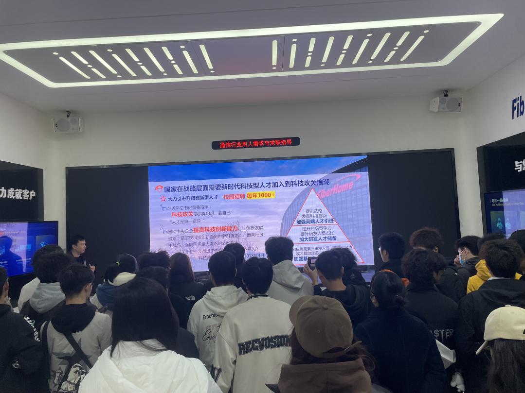 此次认知实习活动,公司对接负责人带领全体师生参观了中国信科集团一楼展厅,了解了公司的发展历史及科技成果。展厅参观结束后,中国信科集团徐总向电信专业的学生们阐释了数字经济时代、新基建和科技创新型人才的深刻涵义,并详细地为大家分析了数字经济时代下的通信行业用人需求。最后开展了精彩的互动环节,帮助学生进一步地认识和理解电子信息工程技术专业。