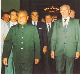图为:邓小平在会见伊朗总统哈梅内伊