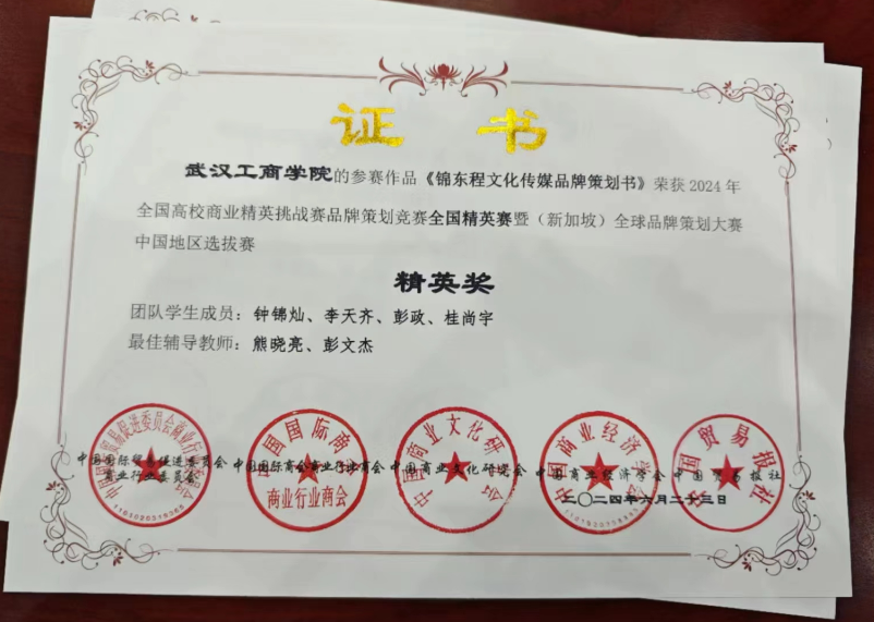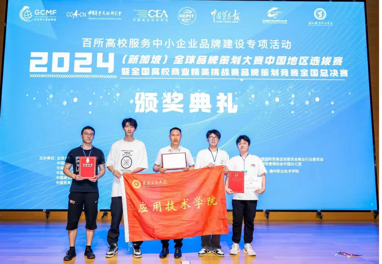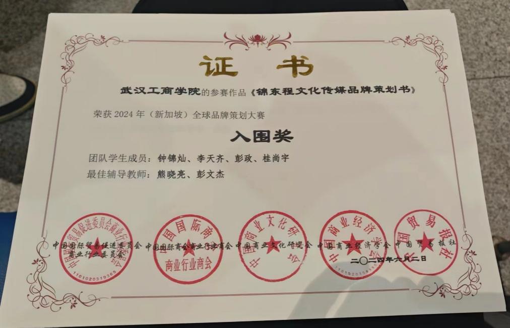 应用技术学院22级电子商务钟锦灿、李天齐、桂尚宇、彭政在指导老师熊晓亮、彭文杰的带领下取得新突破;参赛作品《锦东程文化传媒品牌策划书》荣获全国精英奖、国赛一等奖,展洽交流展示全国二等奖!并成功入围2024(新加坡)全球营销策划总决赛。beat365中文官方网站也被赛会授予最佳组织奖。