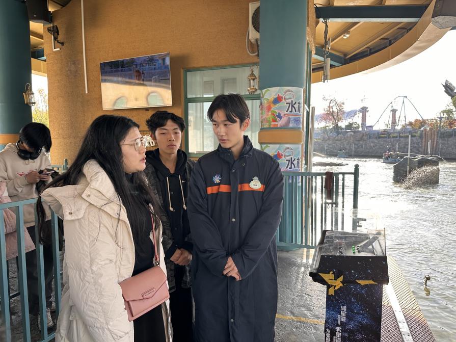 此次走访首先来到了襄阳华侨城水公园项目“奇梦海滩”的现场,由于夏季结束该园区项目均已关闭,来自22计应Z3班实习学生吴昊东带着走访老师演练着炎炎酷暑时期他们的实习日常。随即,走访老师来到星球情报局、特工快艇、雪山飞车、达芬奇飞翔等项目,逐一了解了每位学生的具体工作情况,包括他们的工作环境、所承担的任务、技能掌握程度,以及遇到的问题和挑战等。