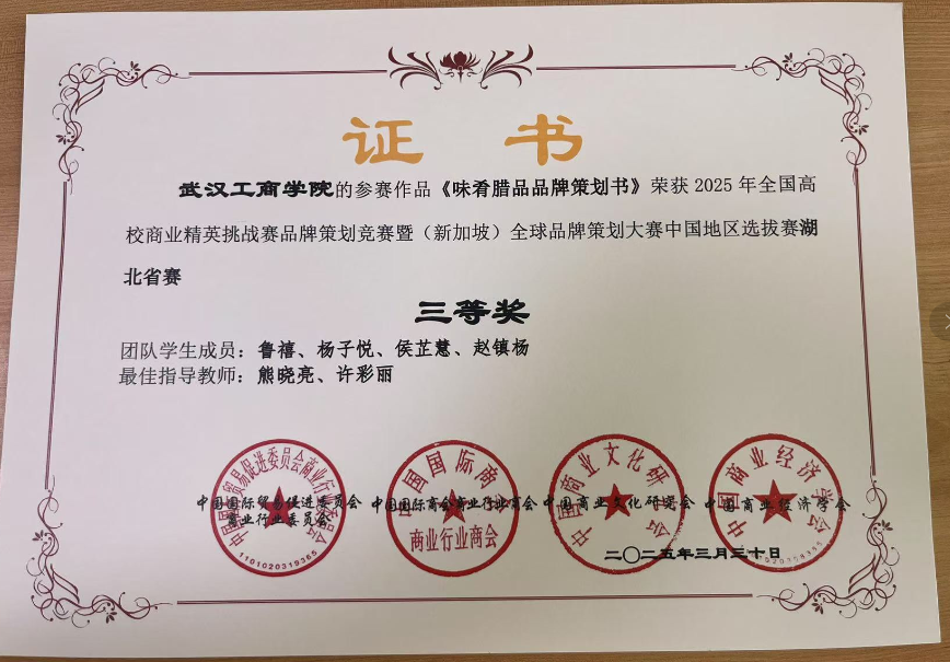 除一等奖团队外,我校另有两支参赛团队同样表现优异。其中,《果香茶韵,幸运同行》荣获省赛二等奖、国赛二等奖;《味肴腊品——品牌策划书》获得省赛三等奖,充分展现了我校在品牌营销与创新创业教育方面的综合实力。