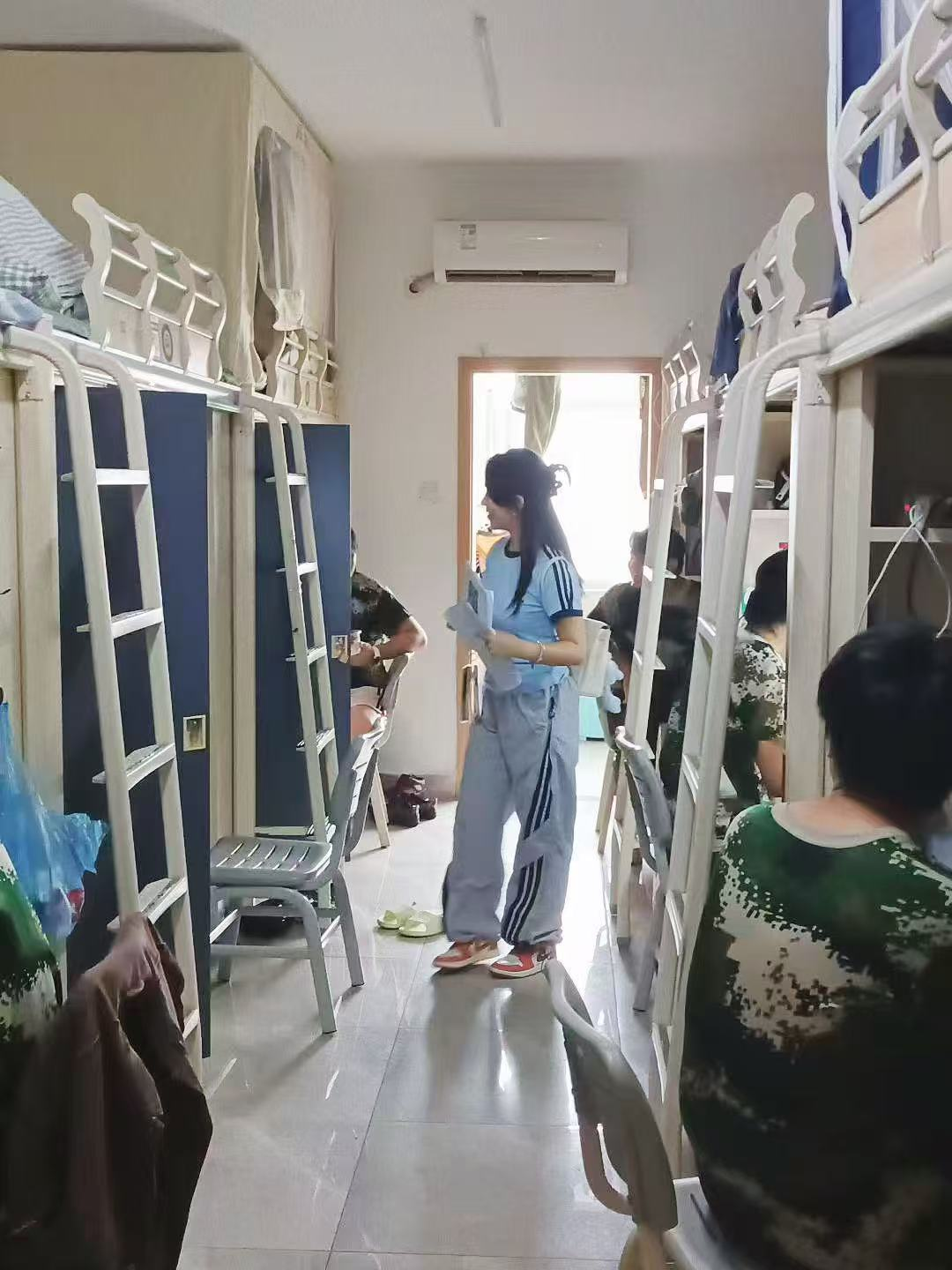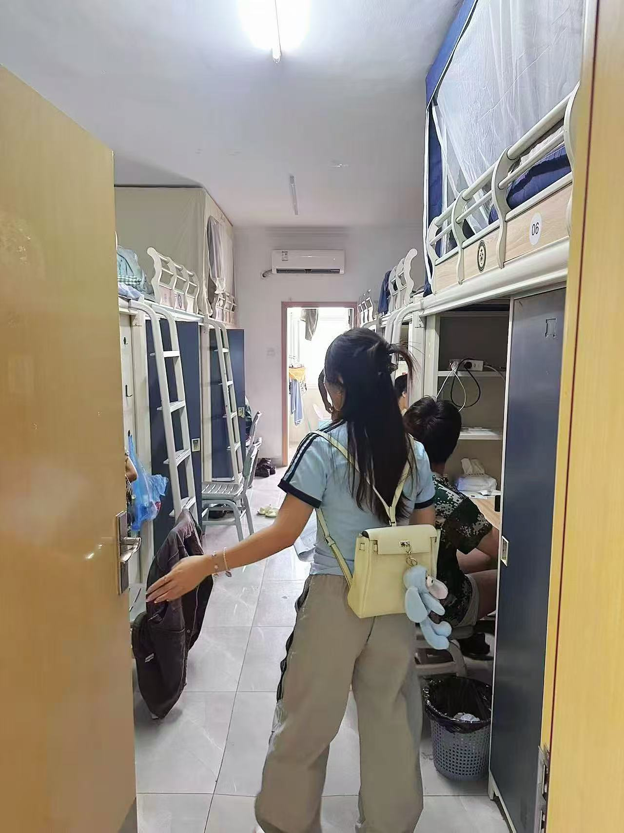 近日,beat365中文官方网站应用技术学院2025级新生军训正有序进行。为深入了解新生军训期间的生活适应情况及寝室卫生安全状况,传递学院的人文关怀,应用技术学院各位领导老师深入参训新生所在寝室,开展了细致的巡查与慰问工作。