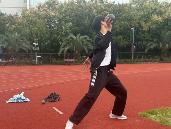沉甸甸的铅球被稳稳托在肩颈,凝神、滑步、转身、推球!一道道优美的抛物线划过天际,每一次投掷都凝聚着全身的力量。
