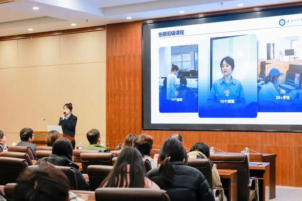 汇报老师聚焦拍摄与剪辑两大核心技能,进行细致拆解。大屏同步呈现1V1针对性指导画面,并展示多班级集中教学的实操成果案例。讲解层层深入、环环相扣,为学子们筑牢了短视频创作的信心与根基。